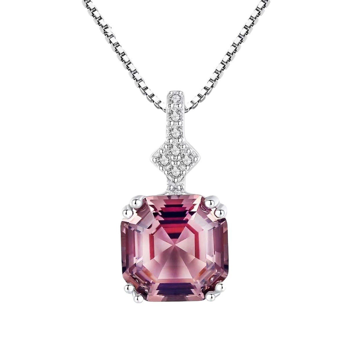 Pink Square Stone Silver Pendant
